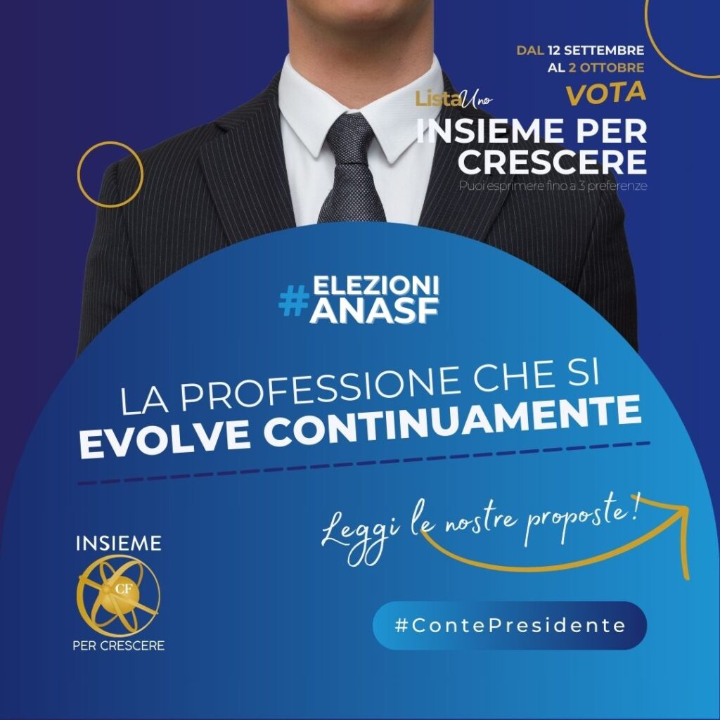 Svolgiamo una professione che deve essere ben rappresentata, tutelata e sviluppata definitivamente per la sua funzione sociale, mediante il completamento del percorso iniziato nel 2020, attraverso la passione che metteremo nella realizzazione di questo programma, per giungere allo storico traguardo dei 50 anni di Anasf (2027) con una Associazione moderna, strutturata, efficiente e pronta per le sfide future.