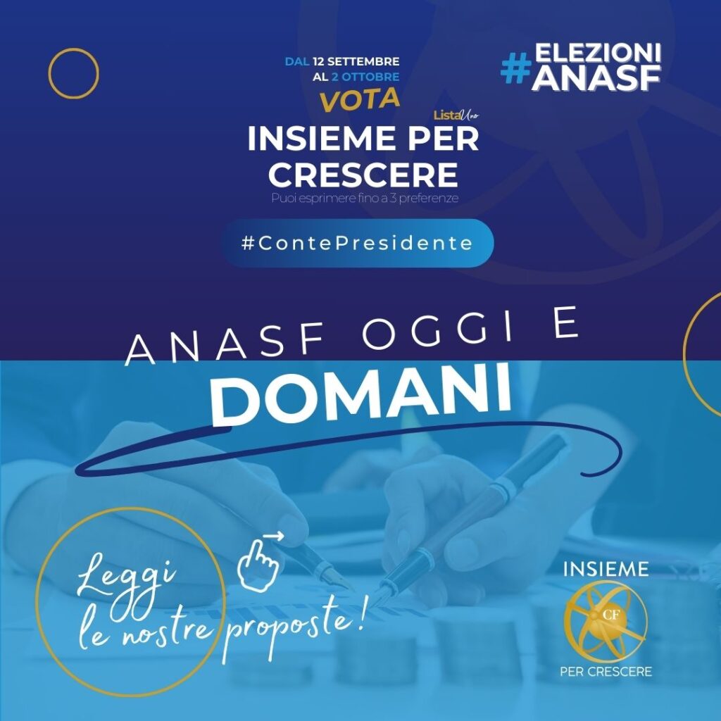 Il nome della lista, INSIEME PER CRESCERE, rappresenta una idea, un principio al quale siamo fedeli, oggi come 4 anni fa. Essere protagonisti del cambiamento e della evoluzione della consulenza finanziaria con coraggio, determinazione, spirito d’iniziativa, capacità di adattamento, orgoglio: queste sono le caratteristiche di chi svolge la nostra professione, legata alle continue trasformazioni della propria materia, da attraversare quotidianamente.